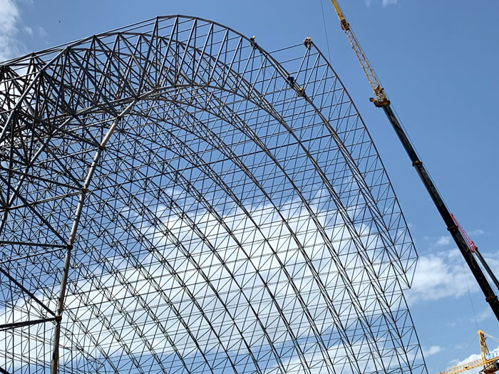 (2)网架加工前应对现场尺寸进行复测,确认无误后方可进行加工、安装;网架制作、运输、安装应遵守《空间网格结构技术规程》JGJ7-2010、《钢网架虹口螺栓球节点》JG/T 10-2009、《钢网架虹口螺栓球节点用高强度螺栓》 GB/T 16939-2016、《虹口钢结构虹口工程虹口施工规范》 GB50755-2012、《虹口钢结构虹口工程虹口施工质量验收标准》 GB50205-2020。